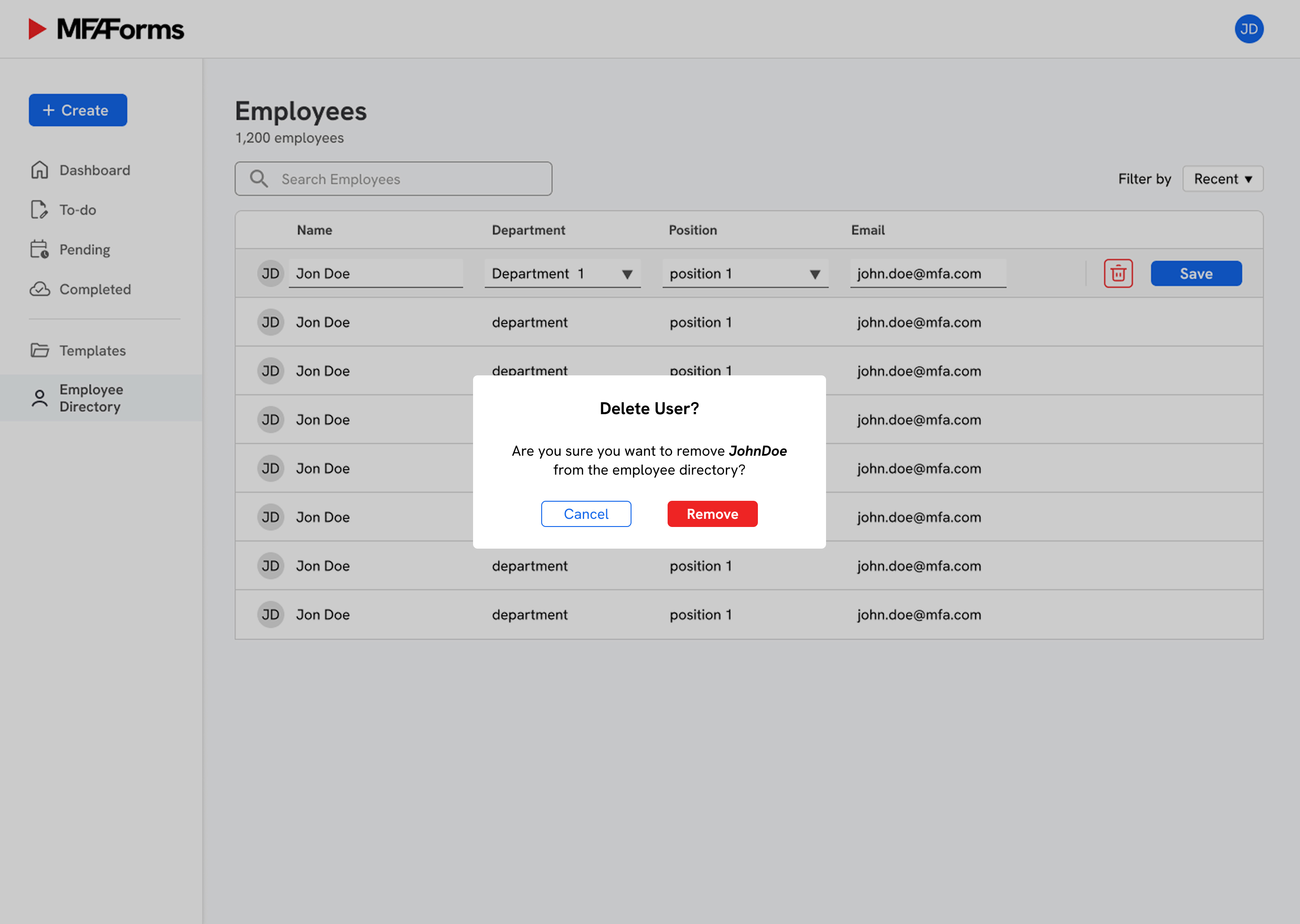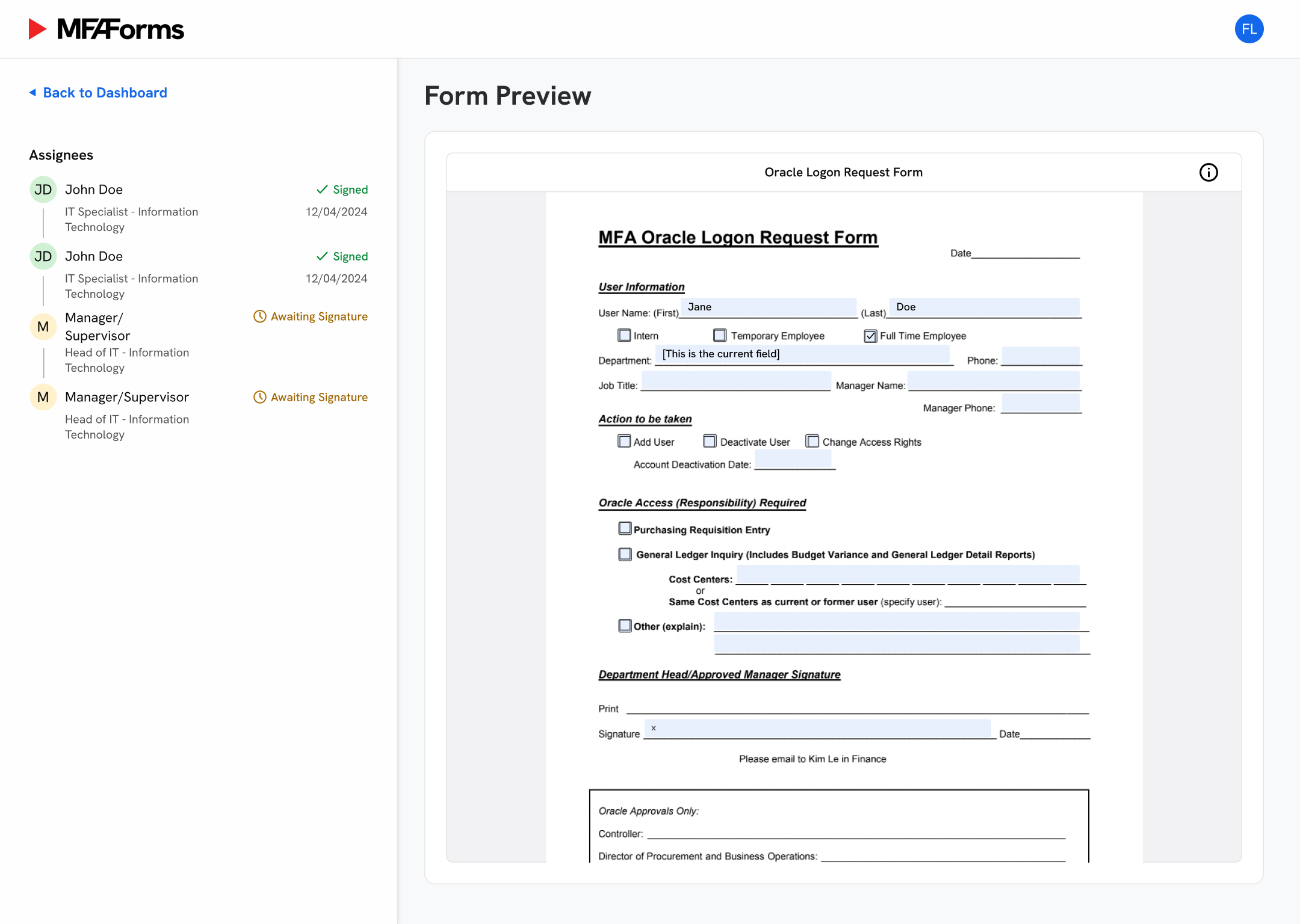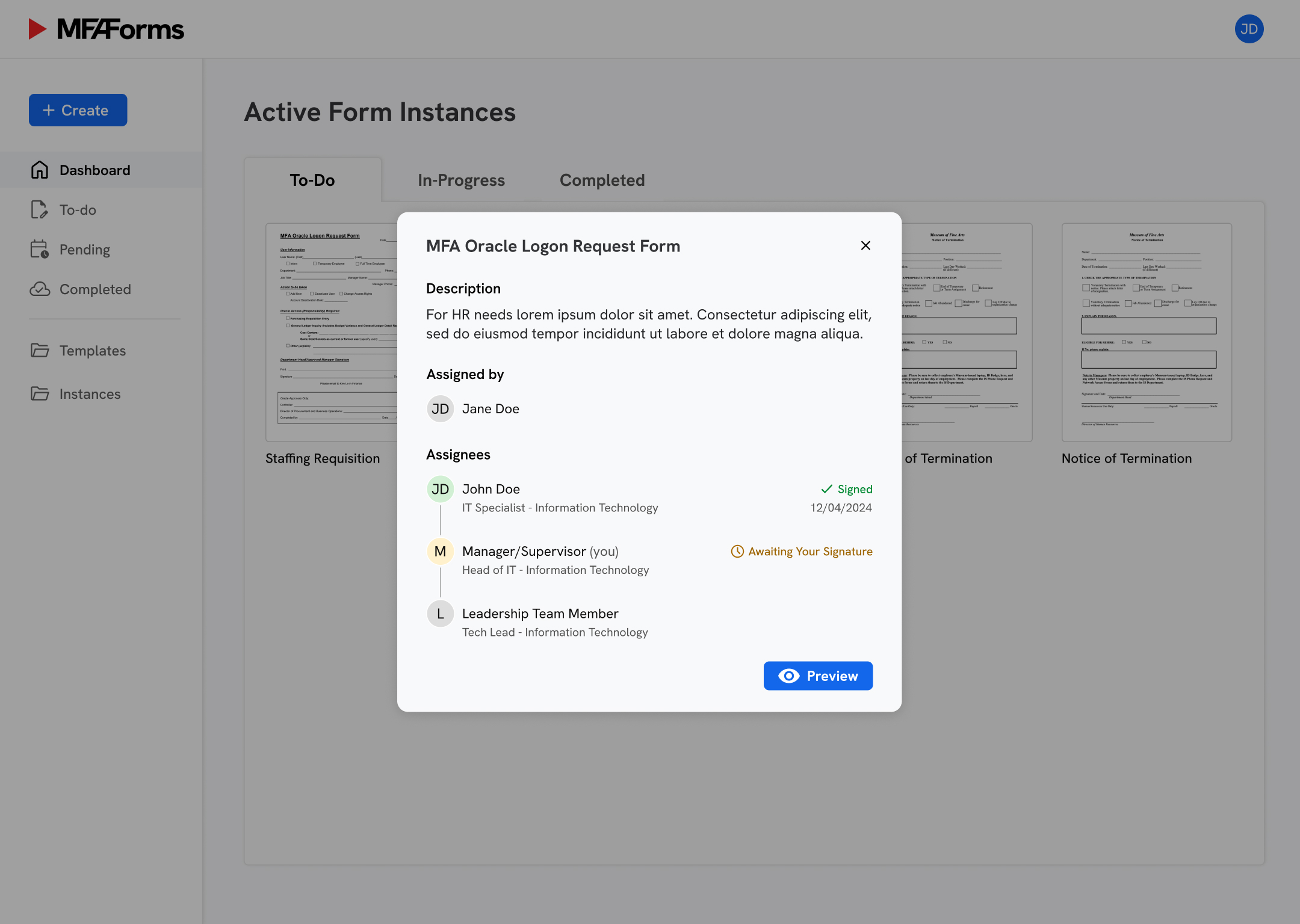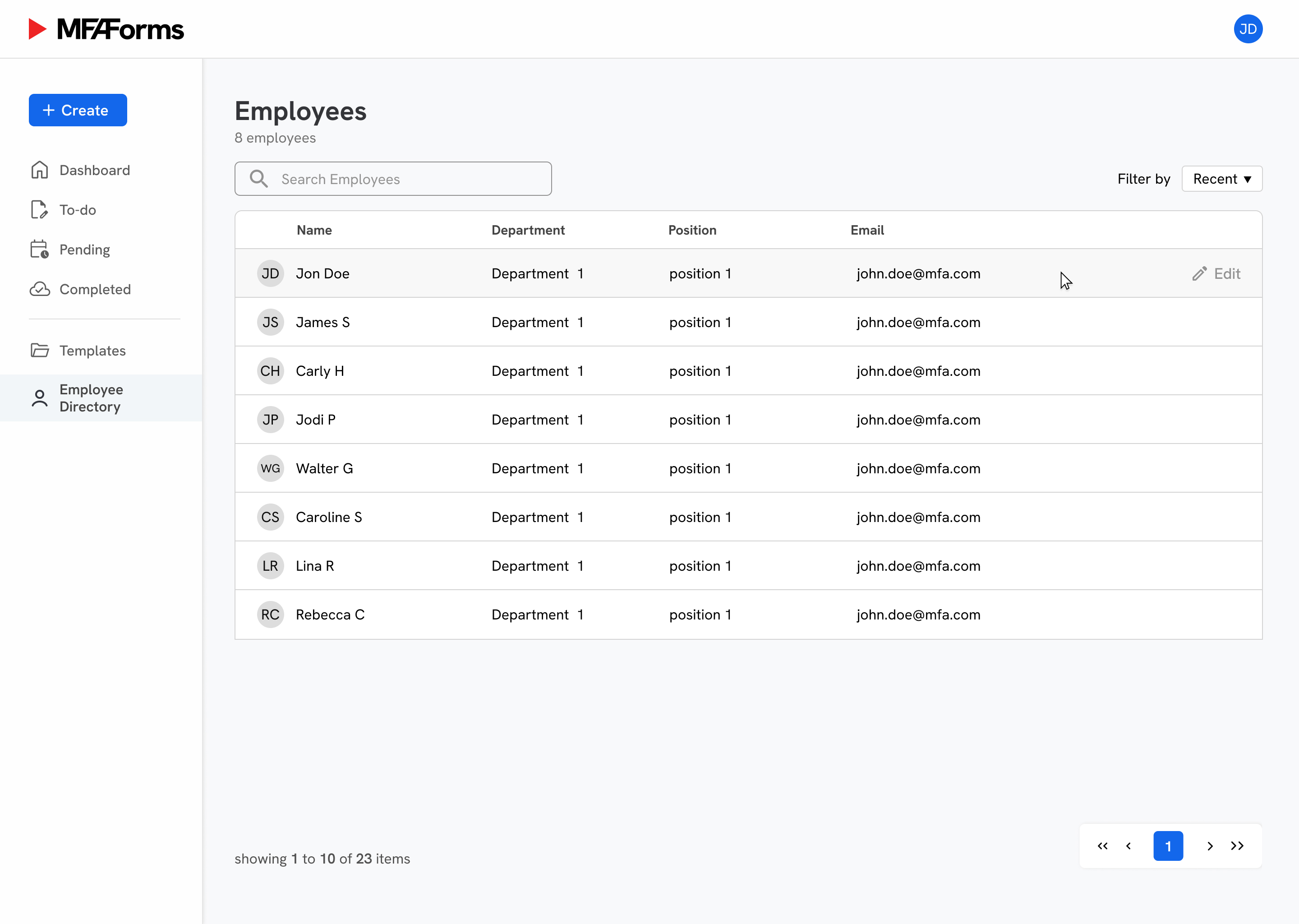 Form preview & employee directory