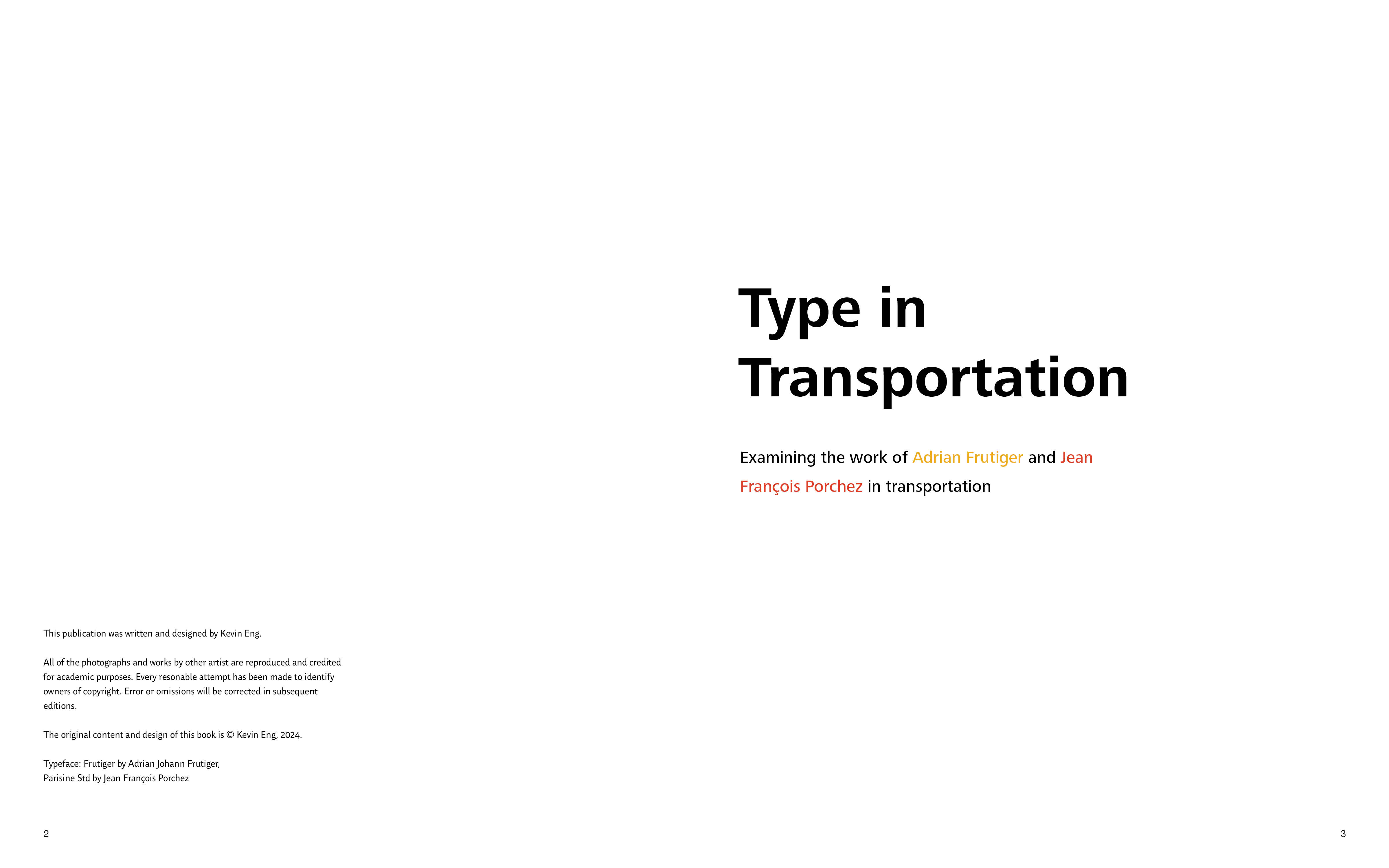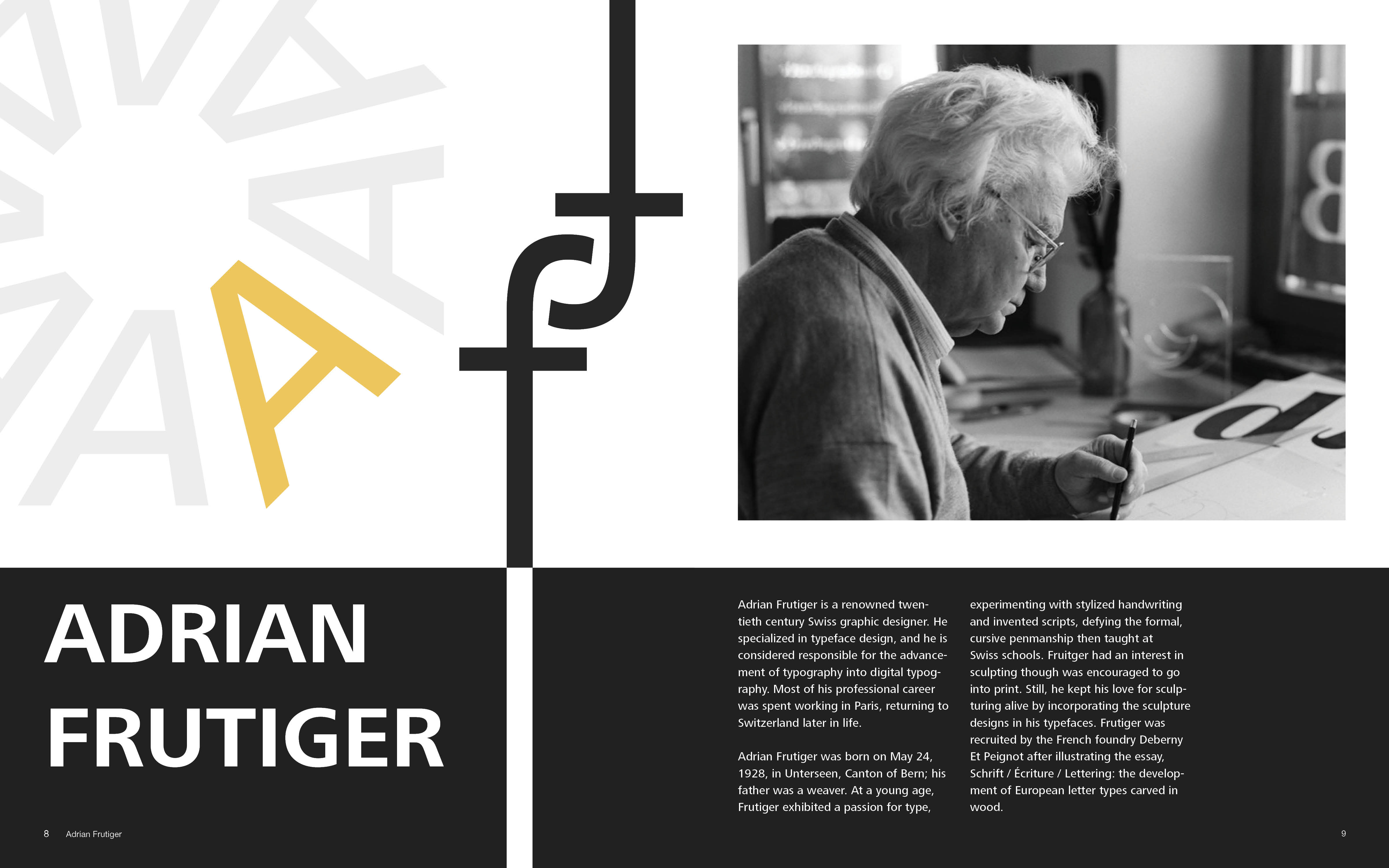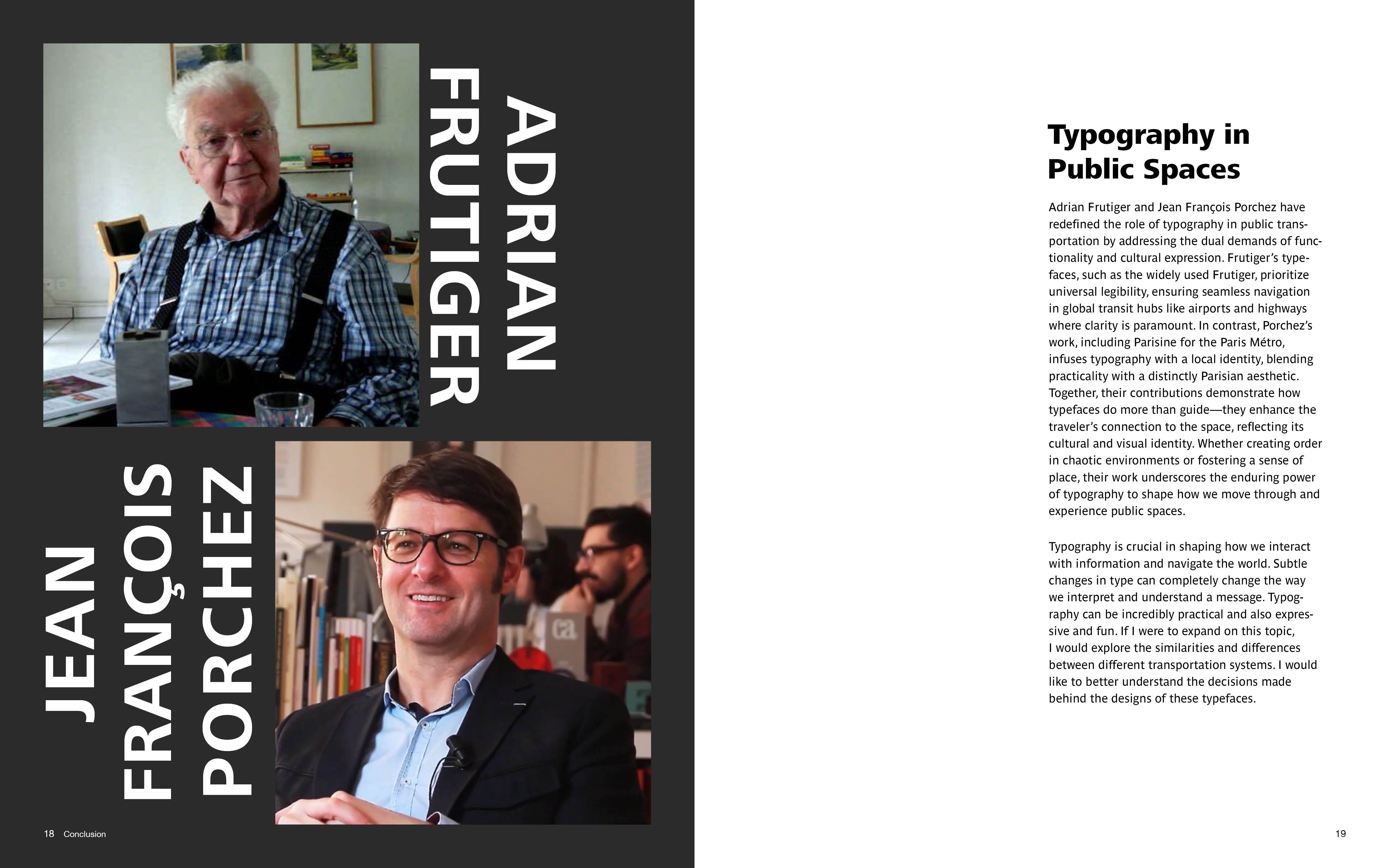 For my Typographic Systems final, I was tasked to create an editorial booklet comparing two type designers. I decided to examine how certain designers create typefaces for transportation systems. This 18-page booklet was created with strong considerations for type, hierarchy, color, and layout.